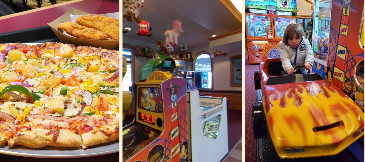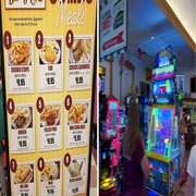 Here, the menu is filled with classic American favorites. Expect to find pizza, hot dogs, bratwurst, and more. Perfect for lunch or dinner. Plus, keep the kids entertained with over 40 arcade games. Families love coming in after a day of shopping.